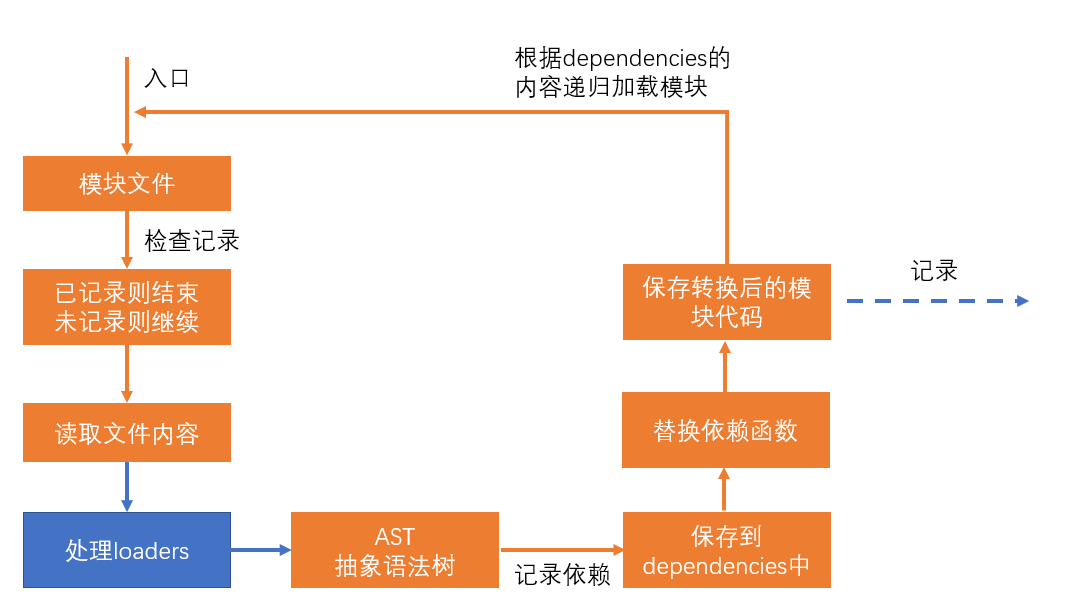 loader函数的将在模块解析的过程中被调用,以得到最终的源码。